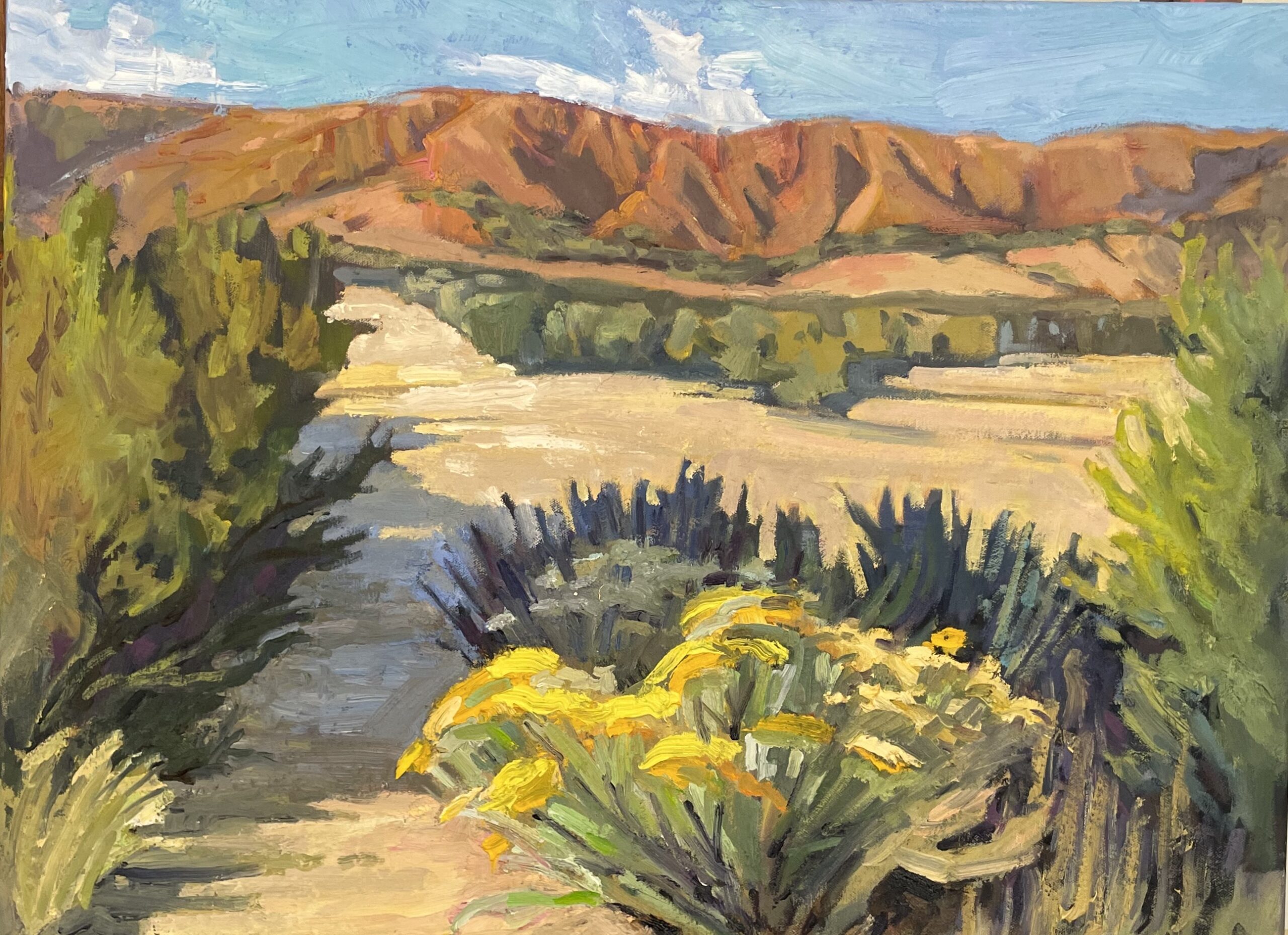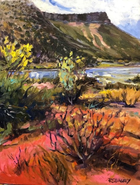 She teaches classes in fine art and composition both locally and online. Her inspiration comes from the magic of the southwestern landscape. Her oil paintings and pastels capture the vibrancy of what is uniquely New Mexico.